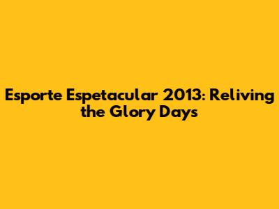 Esporte Espetacular 2013: A Look Back At Iconic Moments
