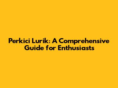 Perkici Lurik: A Comprehensive Guide For Enthusiasts