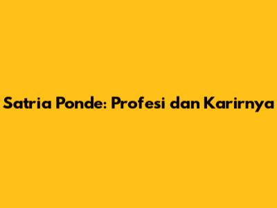 Satria Ponde: Profesi Dan Karirnya
