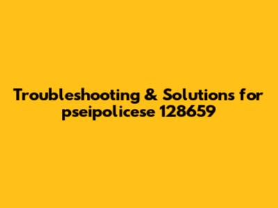 Troubleshooting & Solutions For Pseipolicese 128659